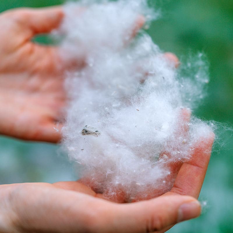 The plant’s sticky seeds quickly cakes onto coils forming a thick, insulating blanket.